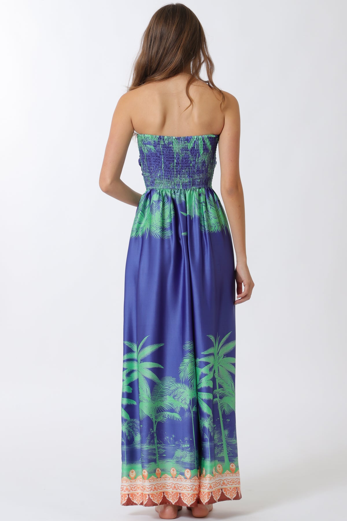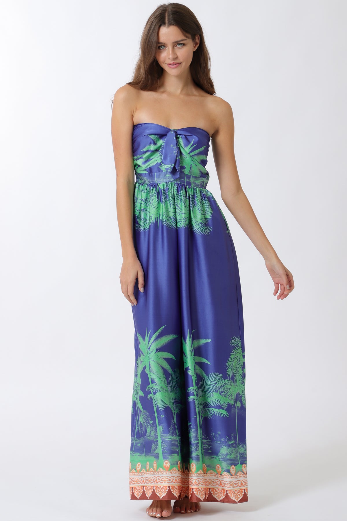 TUBE ELASTIC SMOCKED BACK TOP BORDER PRINTED JUMPSUIT