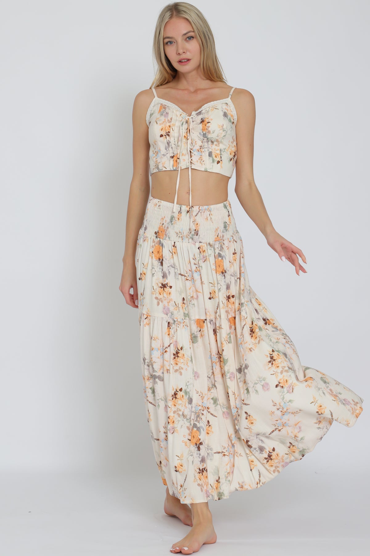Crop Tank with thin adjustable straps paired with matching midi skirt.