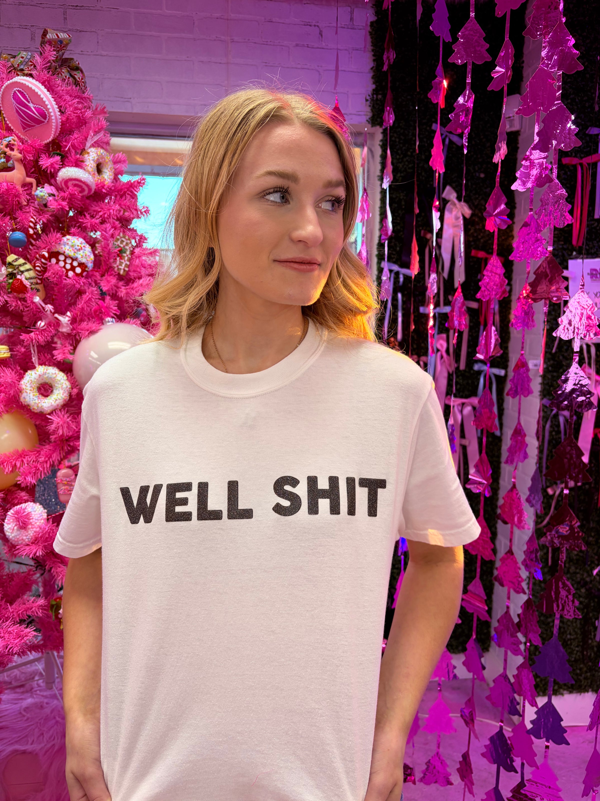 White Graphic T-Shirt w/ Black Glitter Puff Print on White heavyweight full length tshirt.