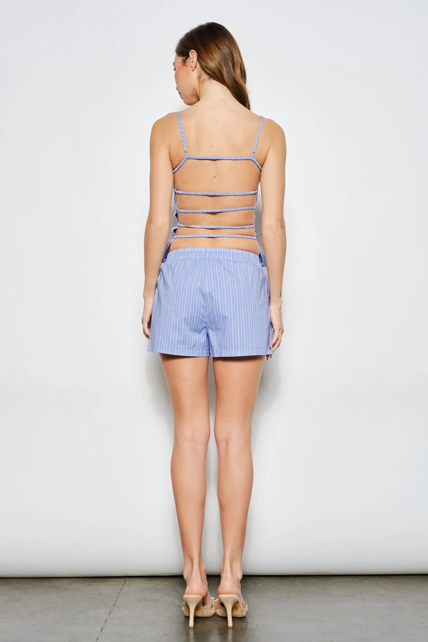 Stay flirty and effortless in the Winslet Backless Smocked Top, a striped favorite made for sunny days and warm nights. The adjustable spaghetti straps and smocked bodice create a comfy, flattering fit, while the open back with elasticized straps adds a playful, skin-baring moment. Soft lining keeps you feeling secure and smooth so you can move with ease and confidence. Complete the look with the matching Winslet Striped Shorts (PSP2090) for a relaxed, coordinated outfit that feels fresh and fun.