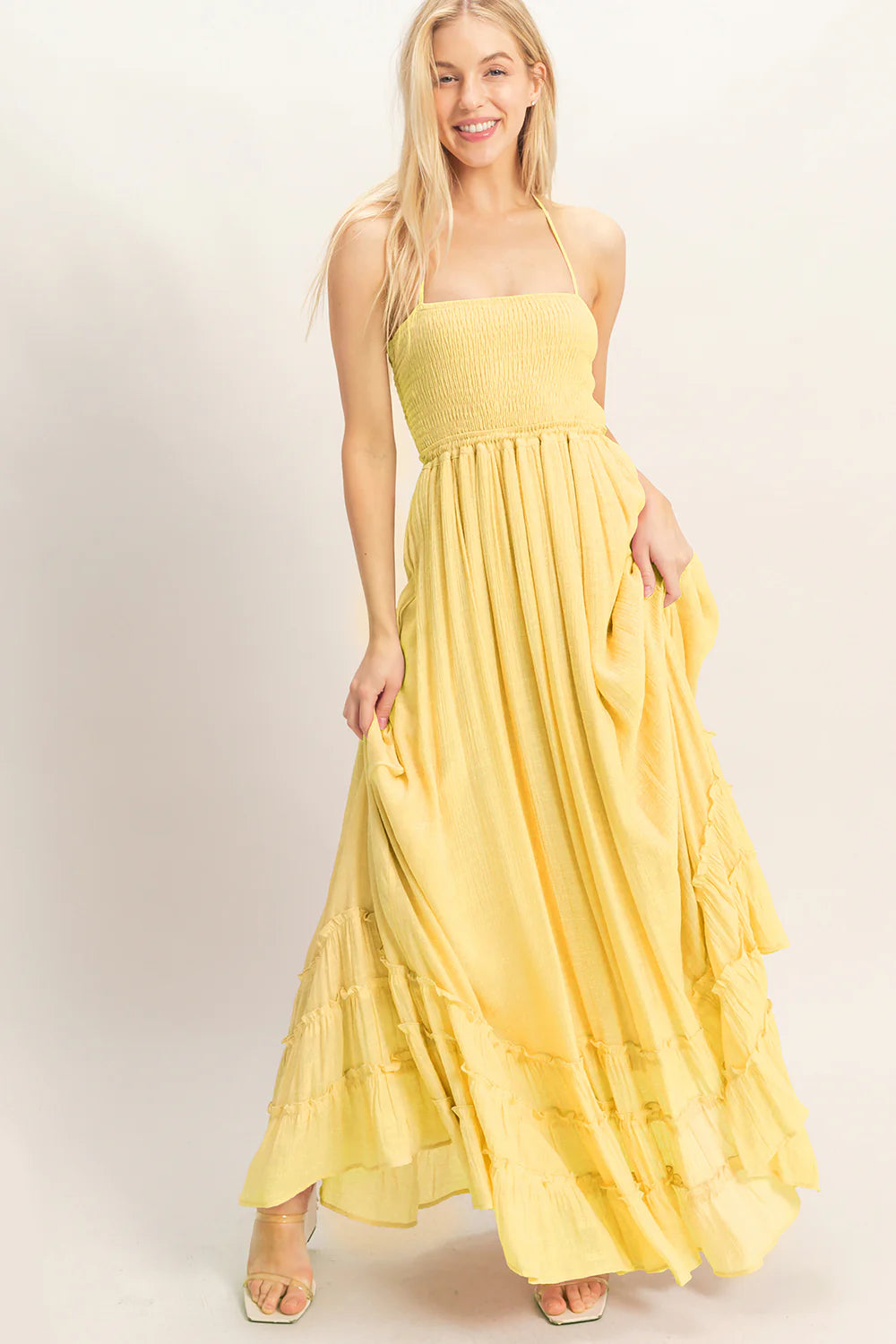 Butter Yellow Halter Maxi Dress