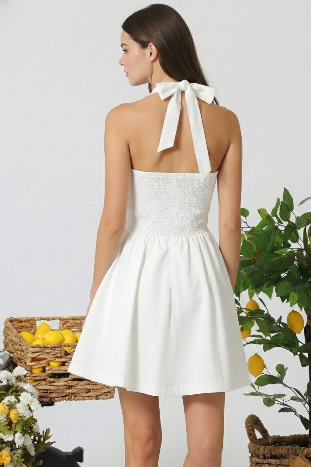 TIE FRONT CHEST BUTTON DOWN ELASTIC BACK WAISTED MINI DRESS