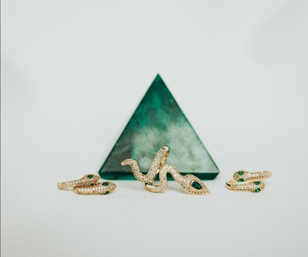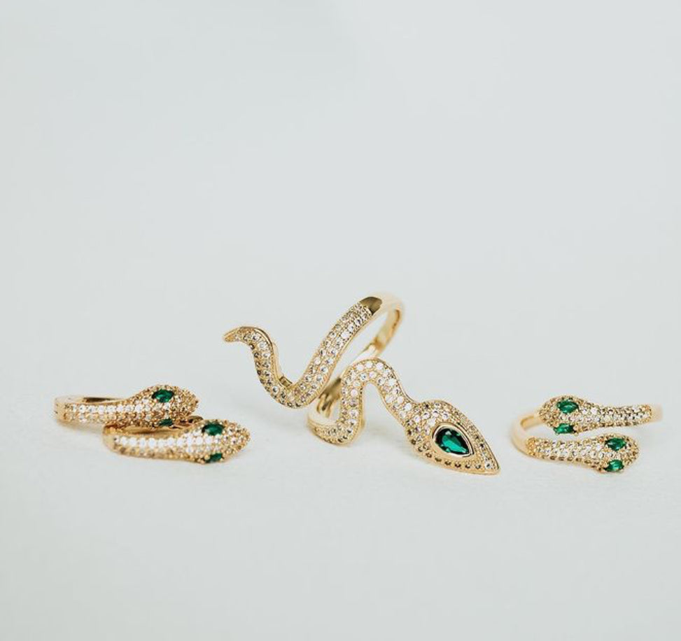 Wrap yourself in this beauty, she's perfect for Fall. This adjustable ring is covered in sparkling CZ's, made of gold plating over brass. This is for the baby snake rings located on each side of the centered longer ring sold separately.