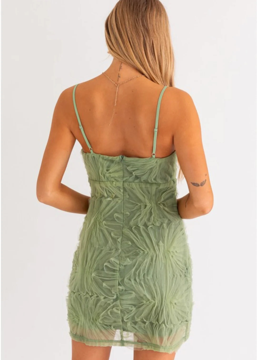 Obsessing over this gorgeous green spaghetti strap mesh mini dress.
