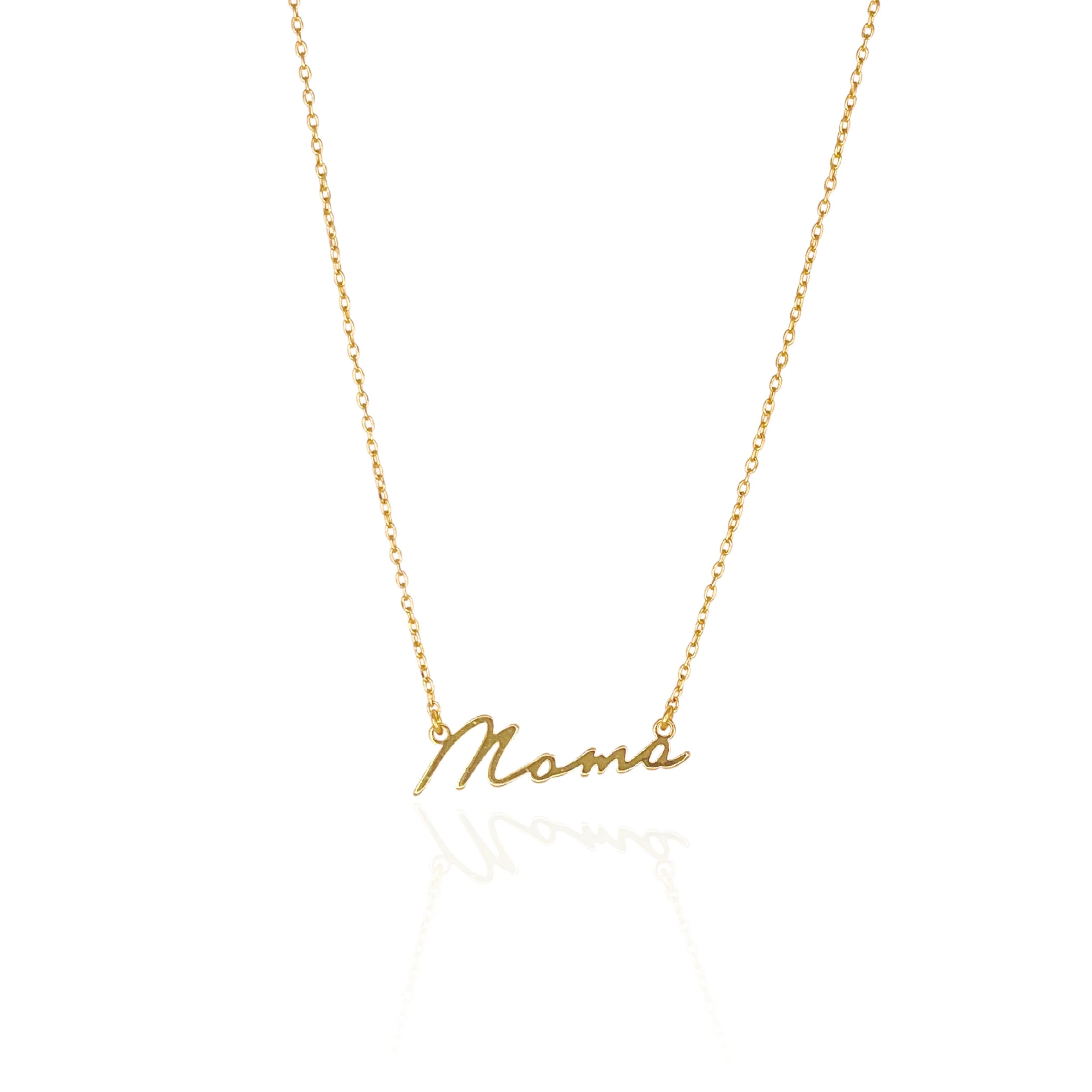 Gold-plated cursive Mama charm necklace. Necklace measure 15" with 2" extender.