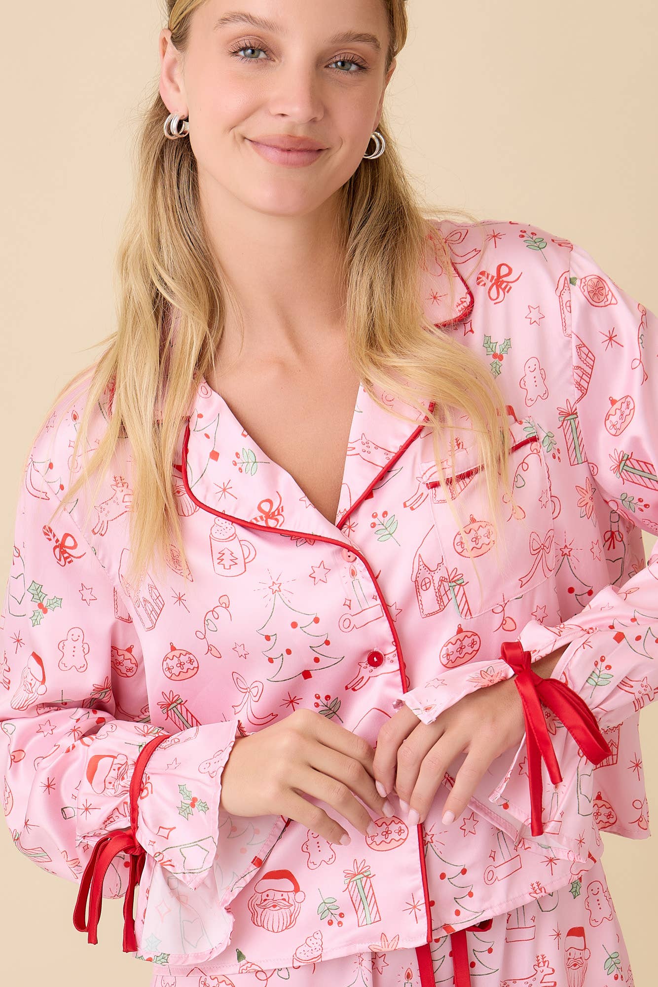 Pink Christmas Pajama Set with Red Trim – Holiday Loungewear