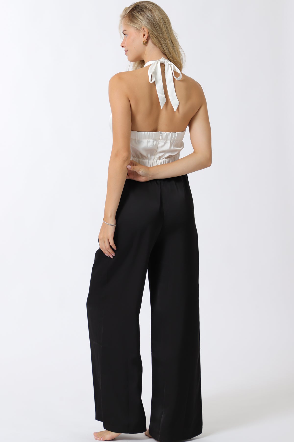 Tuxedo Detail Black and White Jumpsuit with pockets.